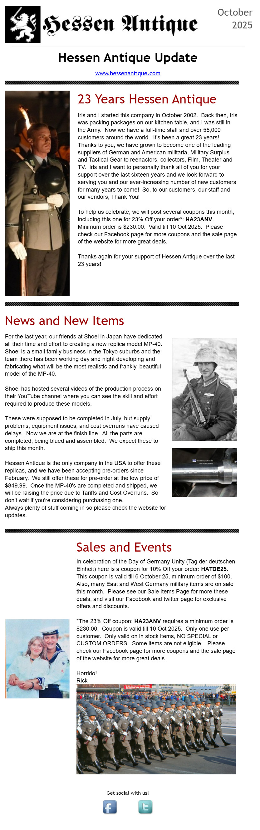 Hessen Antique does not support or represent any organization that promotes hatred or racism. Hessen Antique is a company that offers antiques, historic items and World War II Militaria.