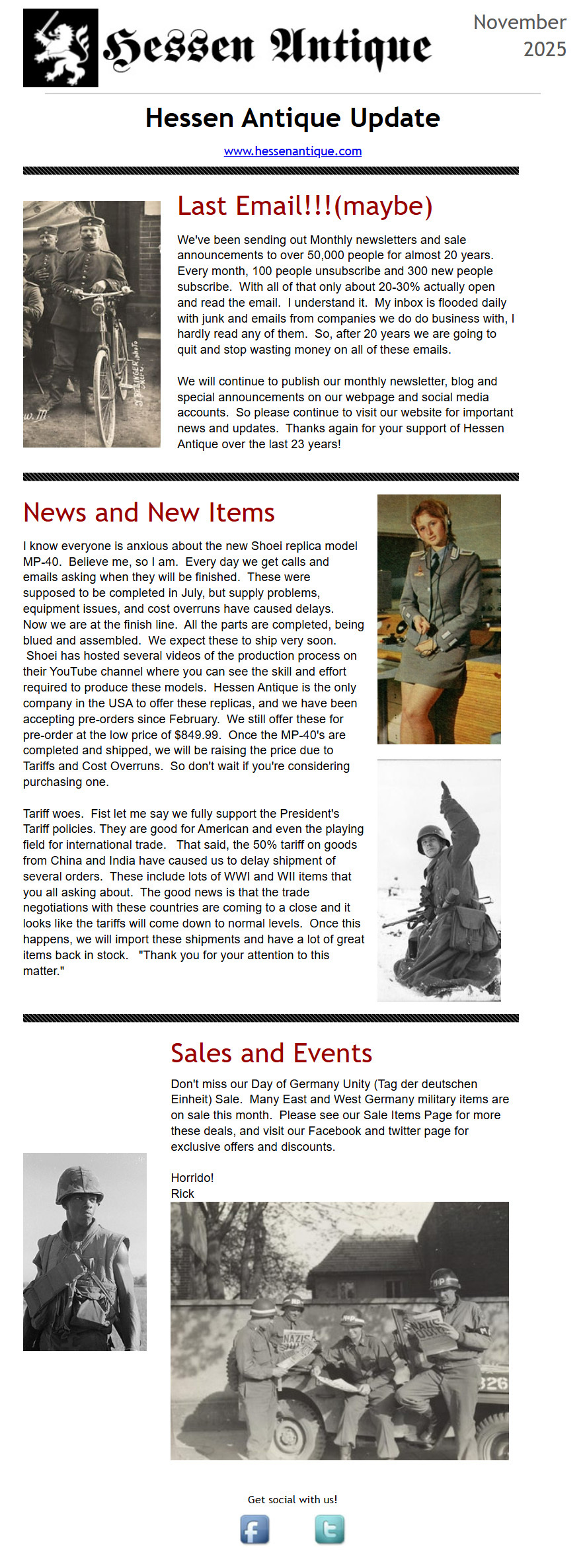 Hessen Antique does not support or represent any organization that promotes hatred or racism. Hessen Antique is a company that offers antiques, historic items and World War II Militaria.